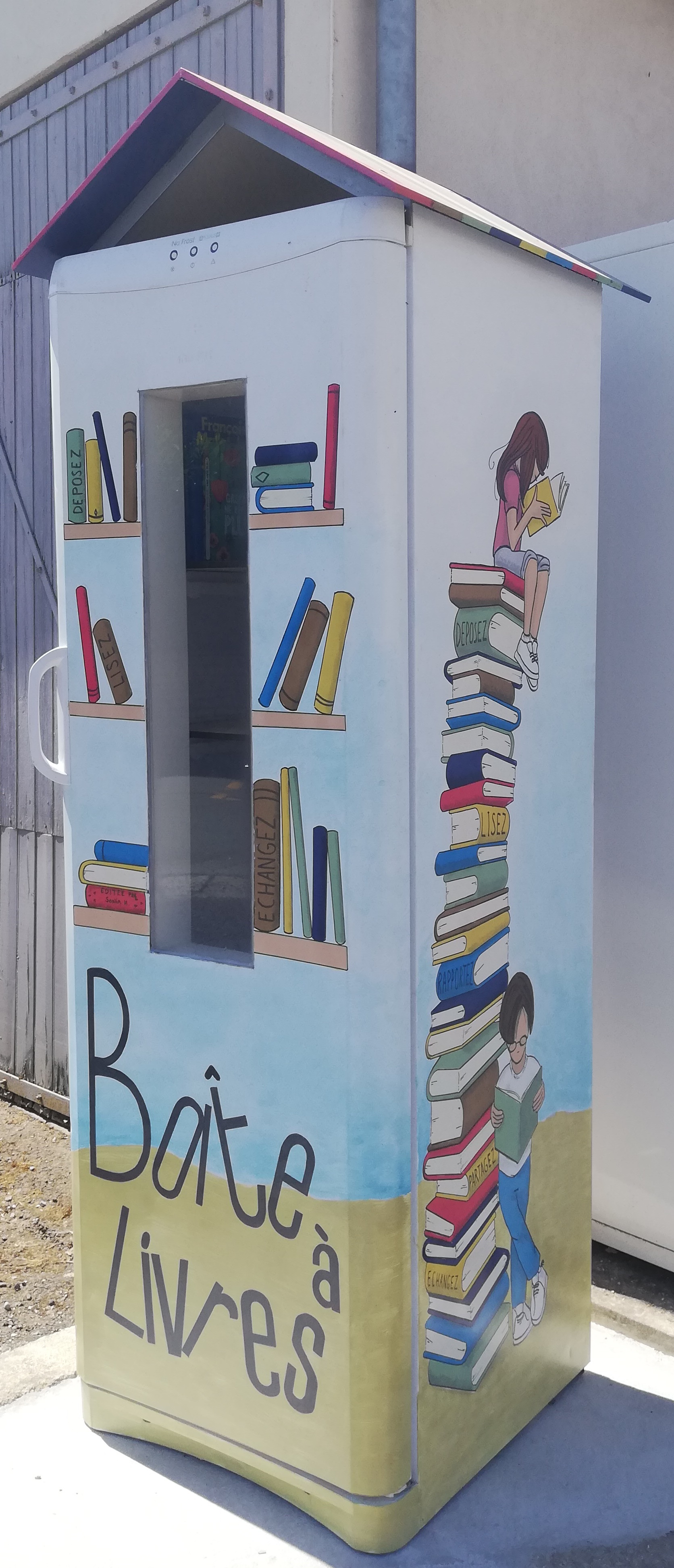 Une boite à livres est à votre disposition, place de la mairie, à côté de la machine à pain. A vous de jouer pour qu’elle se remplisse rapidement et que chacun puisse venir chercher le livre qui lui convient. Prenons en soin, veillons à ce que les lectures soient accessibles aussi bien aux enfants qu’aux adultes. Merci à Sonia pour cette décoration magnifique.